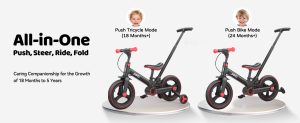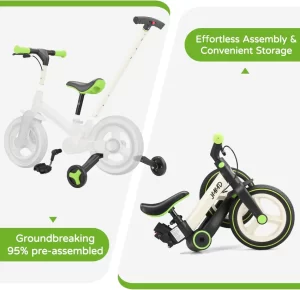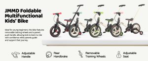 [Multifunctional Kids’ Bike] This 6-in-1 kids’ bike converts into six modes: stroller mode, bike mode with training wheels, toddler bike mode, balance bike mode, bike mode with stand mode, and folding mode. It meets the needs of children aged 18-60 months and brings the joy of riding to children.