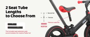 [Beginner Gift] The toddler bike is an ideal birthday or holiday gift for boys and girls aged 18-60 months. Switching between training wheels and kickstands makes it easier for them to learn to ride, helping them develop hand-foot coordination. The seat and handlebar height are adjustable to suit your child’s height. We offer two different seatpost heights. The seat adjusts from 13.39 inches to 18.6 inches.