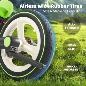 [Durable and Stable] The durable steel frame ensures the stability and safety of the toddler bike. High-quality, all-terrain, airless rubber tires provide shock absorption, making them suitable for riding on a variety of surfaces. In addition, a handbrake is designed for emergency braking or slip prevention, ensuring child safety.